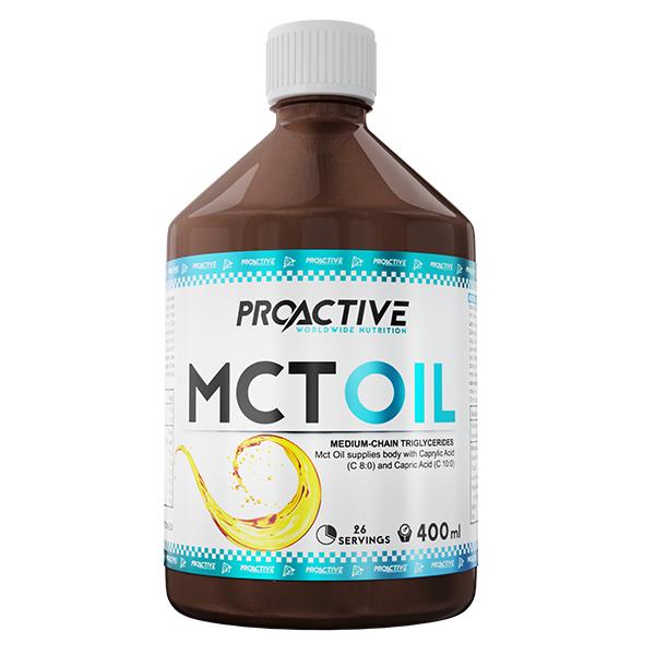 ProActive MCT Oil 400ml to olej bogaty w średniołańcuchowe triglicerydy (MCT), które szybko przekształcają się w energię. Wspomaga metabolizm, poprawia wydolność oraz pomaga w spalaniu tłuszczu. Doskonały dodatek do kawy, smoothie lub posiłków, szczególnie dla osób na diecie ketogenicznej.