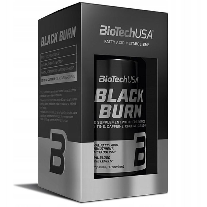 Biotech USA Black Burn to produkt z ekstraktami roślinnymi, L-karnityną, choliną, inozytolem, CLA, HCA, aminokwasami, witaminami i minerałami oraz 200 mg kofeiny na porcję. Kształtujesz swoje ciało w oparciu o plan treningowy, dostosowujesz swoją dietę do ćwiczeń i świadomie stosujesz suplementy diety? Robisz postępy, ale wyniki nie są zadowalające? Jeśli dażysz do perfekcji, przejdź na wyższy poziom! Wybierz termogeniczną formułę najbardziej pasującą do Twoich celów!