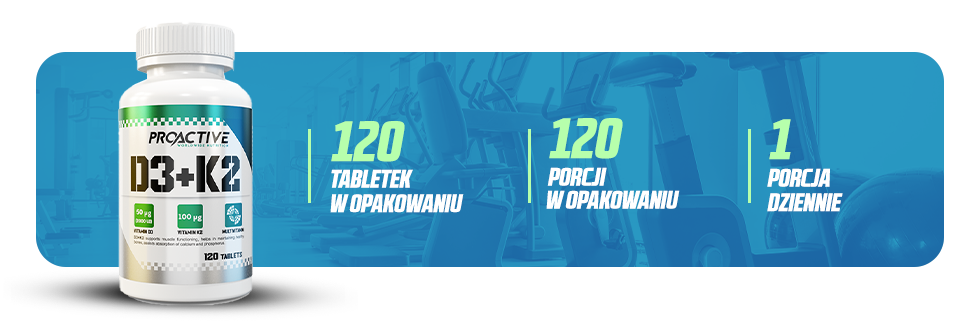 ProActive D3+K2 2000 IU to preparat w formie tabletek, który łączy witaminy D3 i K2 w wysokiej dawce (2000 IU). Produkt jest szczególnie polecany osobom z niedoborem witaminy D3.