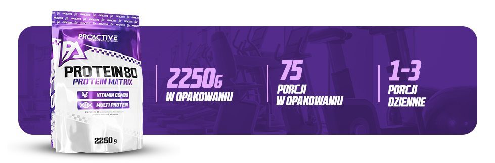 PROTEIN 80 to preparat białkowy wspierający regenerację, wzrost siły i wytrzymałość mięśni. Idealna dla sportowców siłowych, osób aktywnych oraz na redukcji.