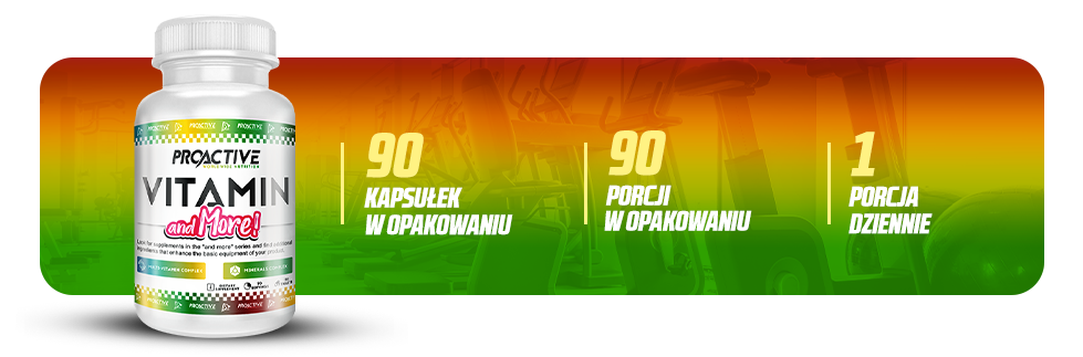 Proactive VIT-MIN & MORE to kompleks najważniejszych składników i witamin w postaci tabletek. Zawarte składniki mają kluczowe znaczenie dla zdrowia i dobrego samopoczucia.