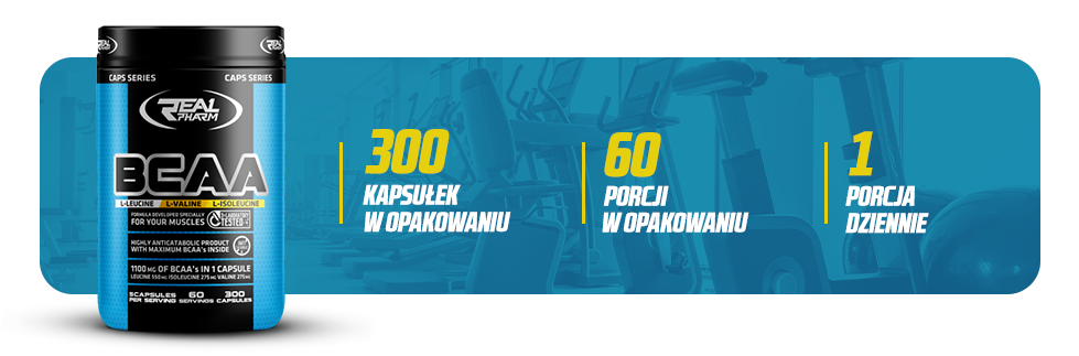 Zawiera 1100 mg BCAA (leucyna, izoleucyna, walina) w jednej kapsułce.