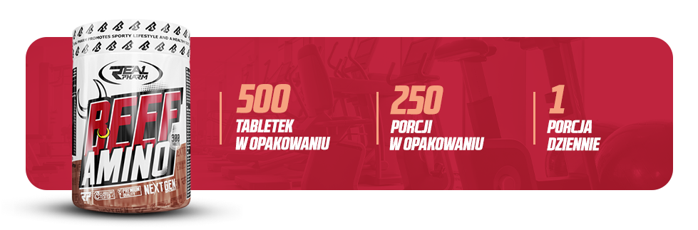 Real Pharm Beef Amino 500 tabs to preparat zawierający aminokwasy pozyskiwane z białka wołowego, które wspomagają regenerację mięśni po intensywnym treningu oraz przyczyniają się do budowy masy mięśniowej. Produkt jest idealny dla osób aktywnych fizycznie, zwłaszcza tych, którzy wykonują treningi siłowe i wytrzymałościowe.