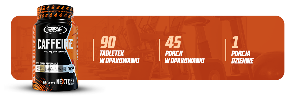 Real Pharm Caffeine 90 tab to preparat zawierający kofeinę. Idealny dla sportowców, osób pracujących umysłowo i wszystkich, którzy potrzebują skutecznego pobudzenia.