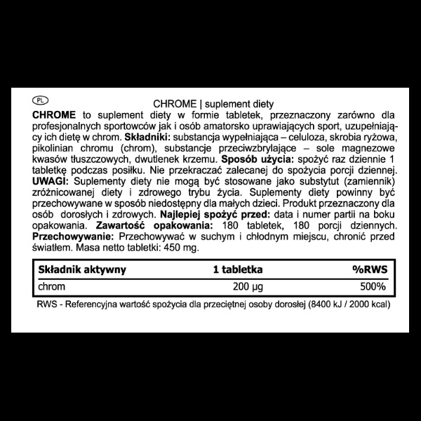 CHROME to preparat w formie tabletek, przeznaczony zarówno dla profesjonalnych sportowców jak i osób amatorsko uprawiających sport, uzupełniający ich dietę w chrom.