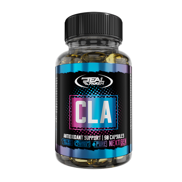 Real Pharm - CLA 90 kapsułek to preparat zawierający sprzężony kwas linolowy (CLA), naturalny składnik występujący głównie w tłuszczach zwierzęcych i roślinnych. CLA jest popularnym środkiem wspierającym procesy redukcji tkanki tłuszczowej oraz poprawy kompozycji ciała.