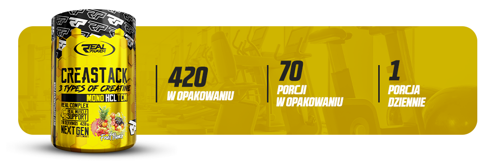 Real Pharm Crea Stack 420g jest przeznaczony dla osób trenujących siłowo i wytrzymałościowo, które chcą zwiększyć siłę, wytrzymałość oraz przyspieszyć regenerację, zarówno na masie, jak i redukcji.