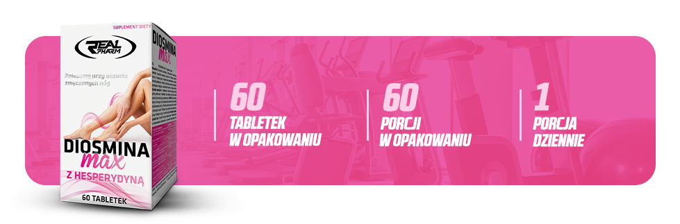 Real Pharm Diosmina Max z Hespedryną jest dla osób z problemem ciężkich nóg, obrzęków, nocnych skurczów oraz żylaków. Idealny dla osób szukających ulgi w przypadku zmęczenia nóg i problemów z krążeniem.