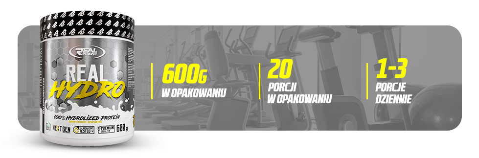 Real Pharm Hydro to wysokiej jakości hydrolizat białka serwatkowego o szybkim wchłanianiu, wspierający regenerację, wzrost i ochronę mięśni. Zawiera BCAA, wspomaga anabolizm i zapobiega katabolizmowi. Dzięki niskiej zawartości tłuszczu i węglowodanów sprawdzi się zarówno podczas budowy masy, jak i redukcji. Bez laktozy, wypełniaczy i zagęstników – idealny dla sportowców i osób aktywnych fizycznie.
