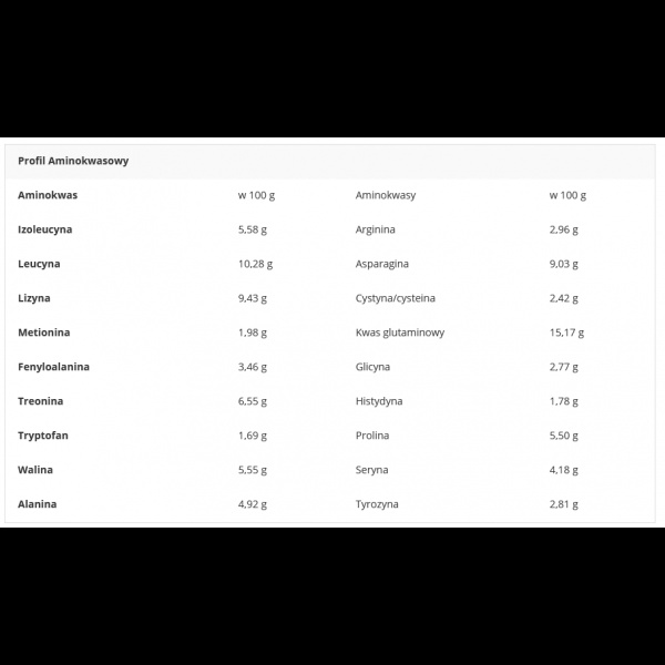 | Hydrolizat białek wołowych | 6 g | 1,8 g | 5,4 g |